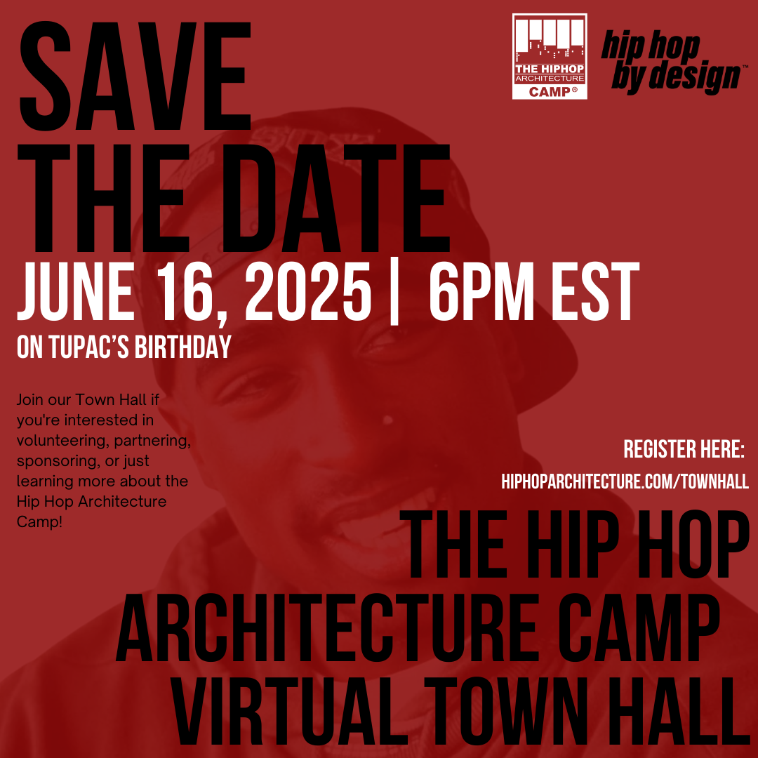 Thank you for expressing interest in joining us for The Hip Hop Architecture Camp Town Hall on June 16, 2025 at 6PM EST — Tupac’s birthday.